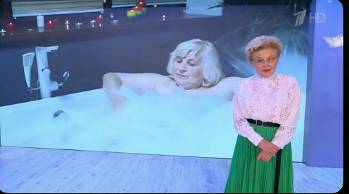 Клоуны учатся убирать ёлку. Выносить ëлку из дома доверили старому еврею. Малышева с него ухахатывается. Говорит, Шаичу надо было не в профессоры идти, а в клоуны!!! (В смысле? Ну так он в клоуны и пошёл.) Говорит, Шаичу даже никаких сценок играть не нужно, а просто ходить туда-сюда по сцене, люди и так со смеху помрут... Если честно, то со смеху умирает только одна Малышева, её прям крючит от юмора творящегося на арене. А уж когда Конь начал рассказывать бородатый, глупый анекдот, ЛенВасильну чуть не разорвало вклочья. Она так смеялась, так смеялась...