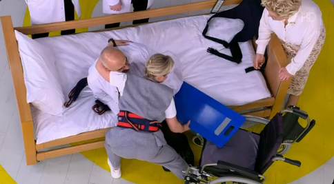 А Херочка, бестолочь, всё пытается сам подниматься. Надо сыграть маломобильного больного, как мамО у бапки, а он не понимает...