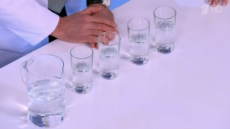 Зрители в студии сегодня, умные. Правильно отвечают о потреблении количества воды в сутки. Молодцы. Доза в 2 литра устроила Малышеву.