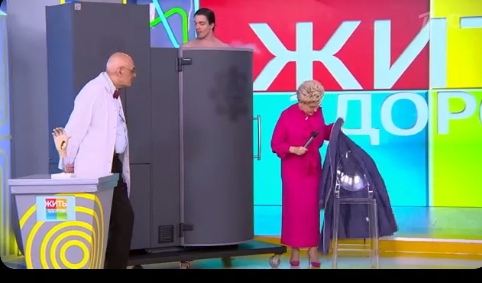 Замороженные детки разбежались по всей студии. Малышева вновь и вновь напоминает, что эти детки были замороженны в своё время.
