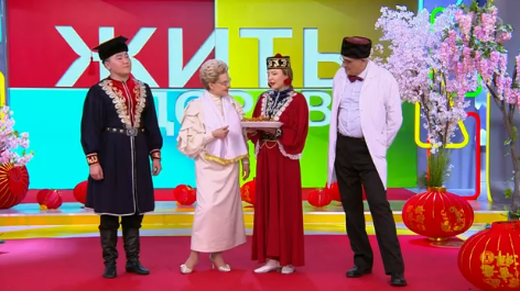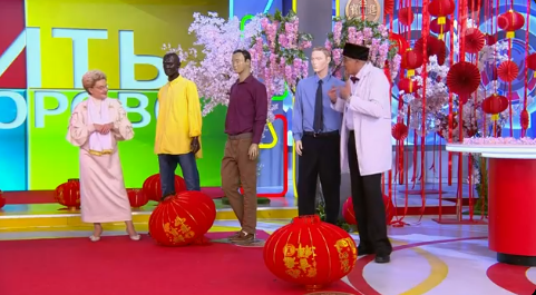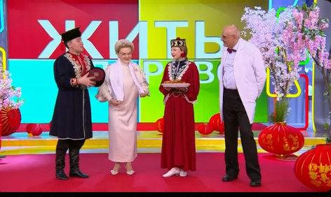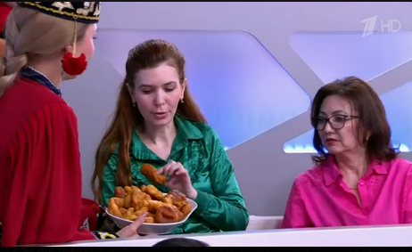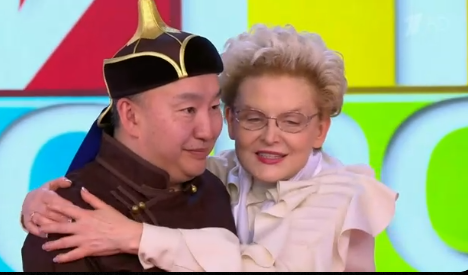 Малышева страстно обнимает мордовку тувинку. Ведущая очень хочет обмануть россиян. Она снова притворяется доброй феей, которая уважает все расы и все народности мира.