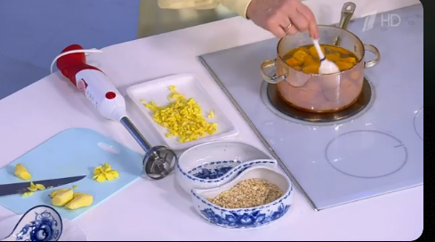 Руками после тыквы с супницей возюкает по лицу тёти! Скоро тётя будет писять зеленым пигментом..
