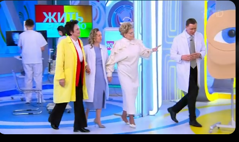На сцене тётка, которой удалили глазные грыжи. Малышева интересуется, как тётку встретили на работе? Тётка отвечает -- все @Куели от красоты такой, всем понравилось. (Да всем пох! Никто и не помнит, как она раньше выглядела? 🤣🤣🤣)
