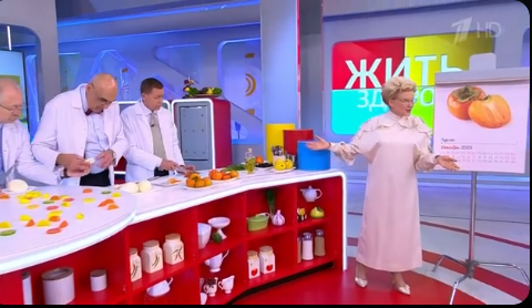 Конь объясняет глупым нищебродам, как правильно выбирать хурму. Пока он объясняет, Малышева захлебывается слюнями. Очень громко захлебывается. А тут еще и Гандельман НАСТРОГАЛ детей какого-то сыра и прибабахал это всё ломтиками хурмы. Аххх... Как это вкусно. Но ленвасильна не жадная, она хочет, чтобы зрителям "было хорошо"...
