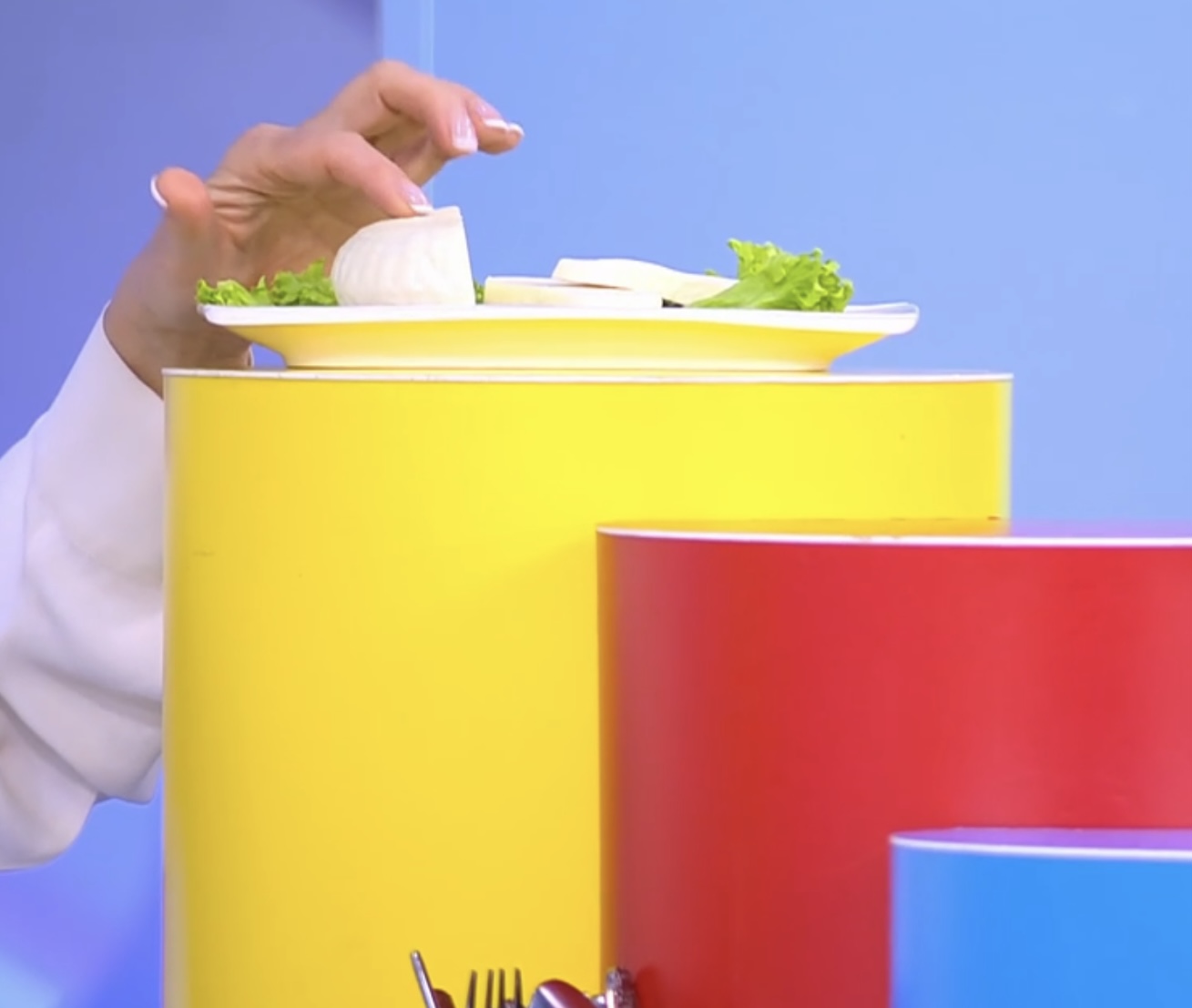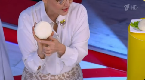 Раздают зрителям сыр. Без салфеток, без тарелок, без вилок. Вобщем, всё как обычно. Жрите свиньи не обляпайтесь.