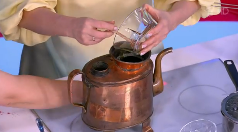 Малышева пьёт сбитень из ИСТОРИЧЕСКОГО стакана. Все пьют из одноразовых, а она, из исторического. В историческом стакане ей сбитень больше понравился.