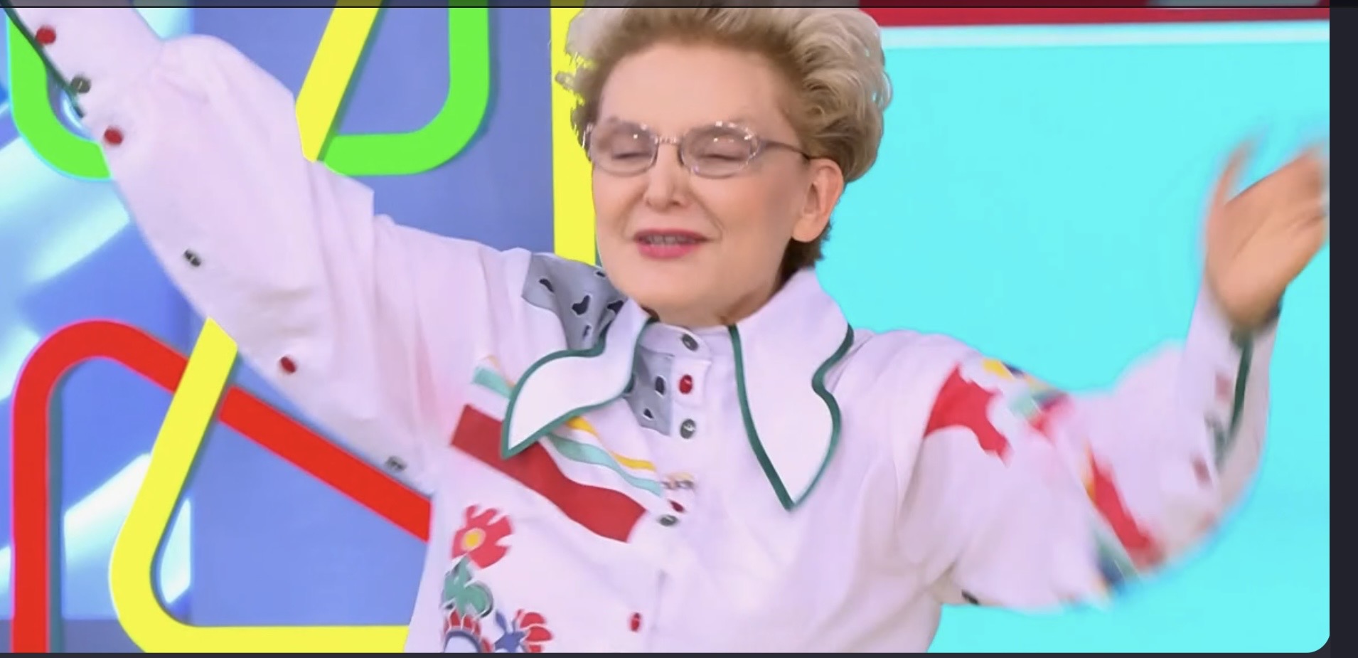 Старуха наяривает хула-хуп на фоне несчастного Шаича (все видели как он это красиво делал?). После этих упражнений речь его совсем ухудшилась
